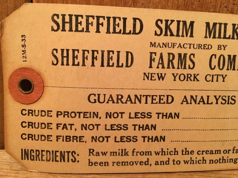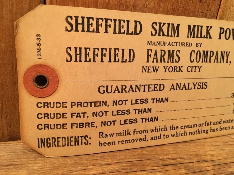 Vintage Sheffield Farms Milk Tag ビンテージ ミルクタグ 紙物 紙タグ ヴィンテージ