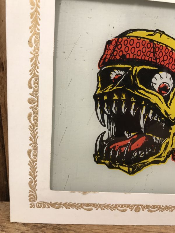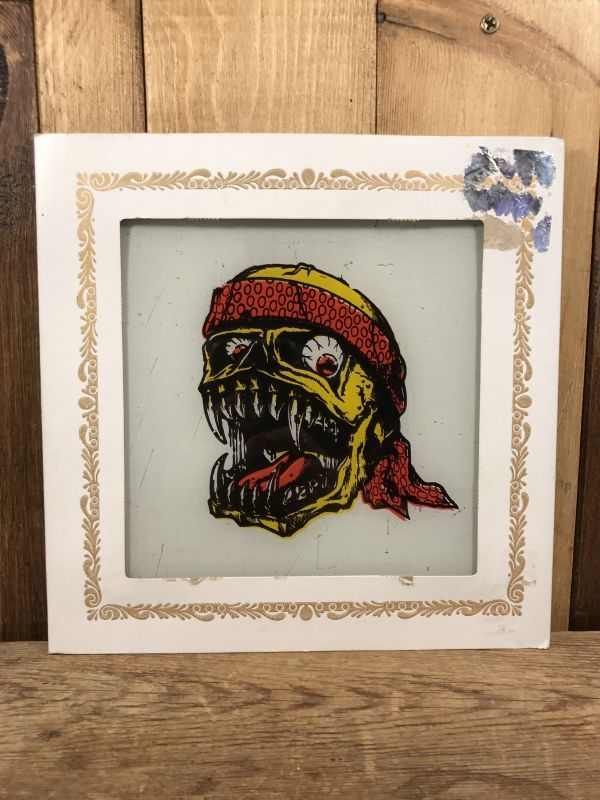 80年代頃〜のSkete Bandana Skull(スケートバンダナスカル)が描かれたガラス製プレートになります。