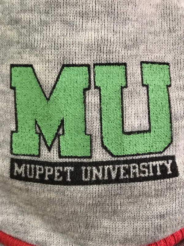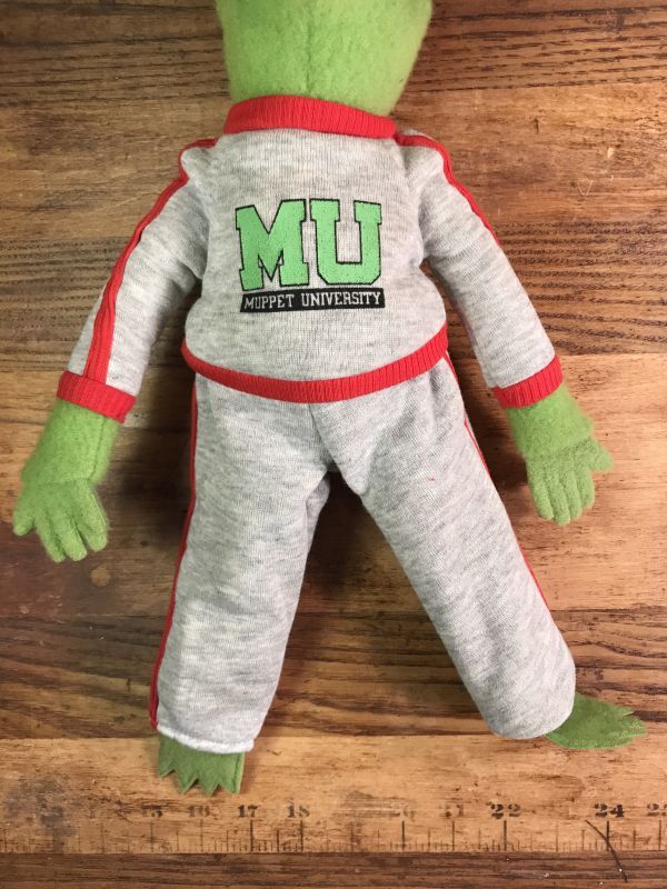 MUPPET UNIVERSITYのスウェットを着たカーミットのドールです。