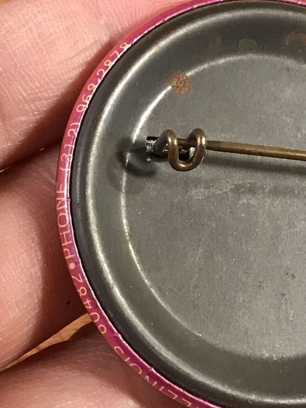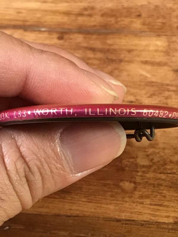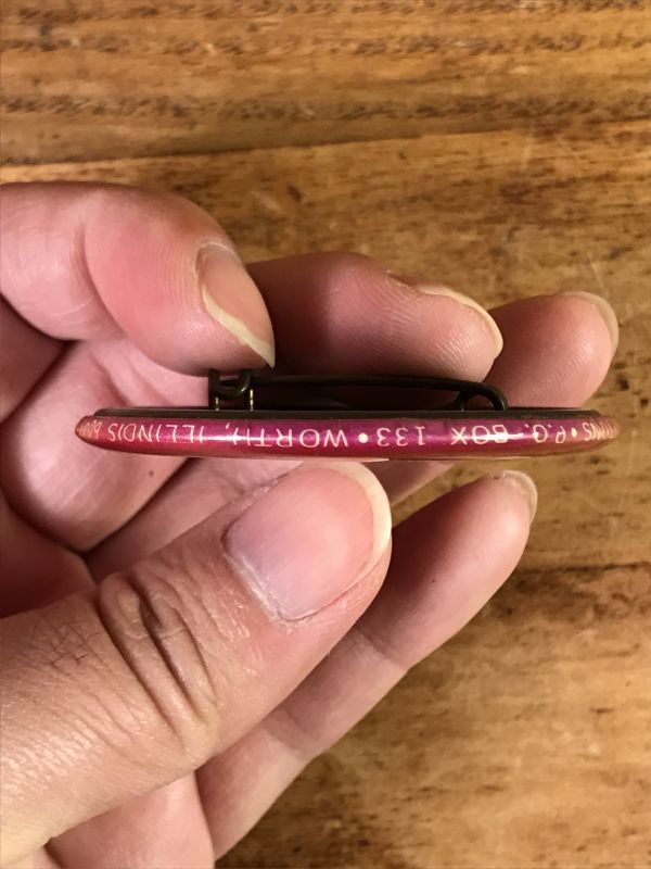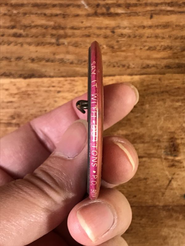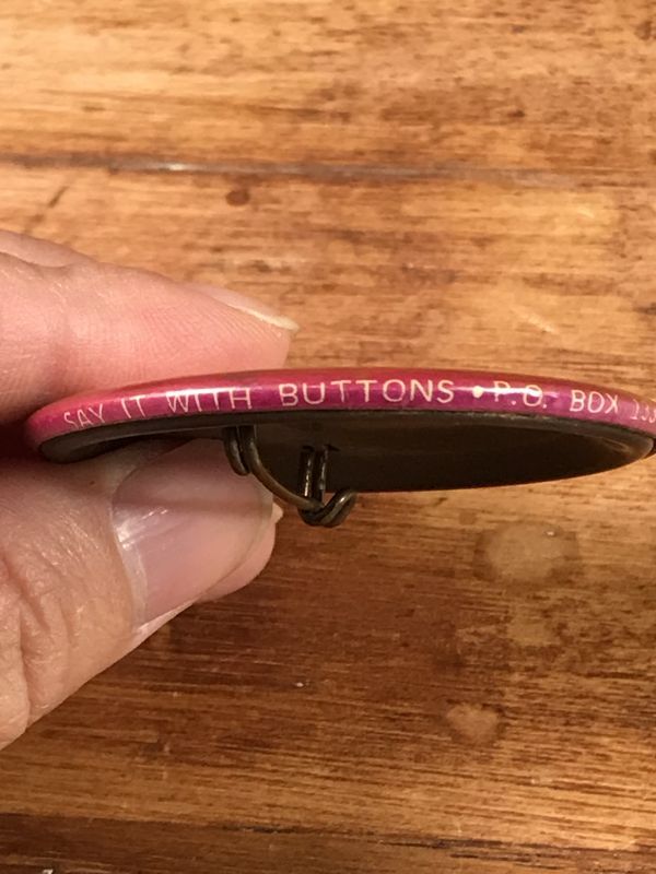 横面の下側に“SAY IT WITH BUTTONS P.O.BOX 133 WORTH, ILLINOIS 60482”の文字が入っています。
