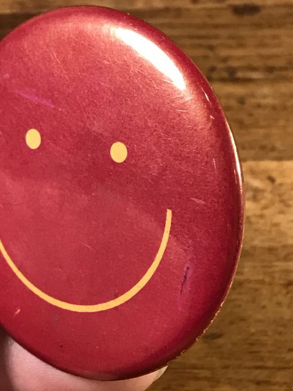 70〜80年代頃のスマイルフェイスの金属製の缶バッジになります。
