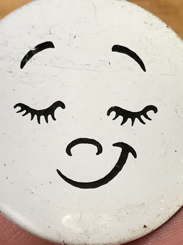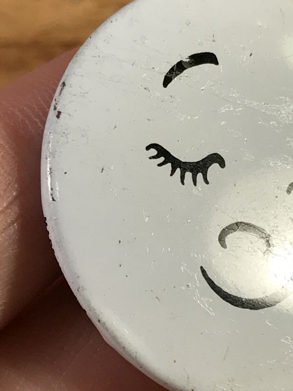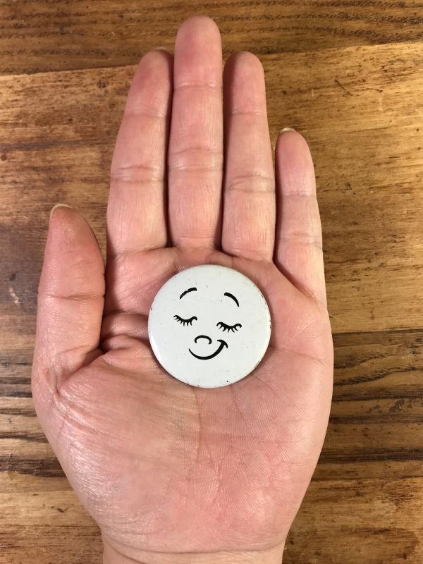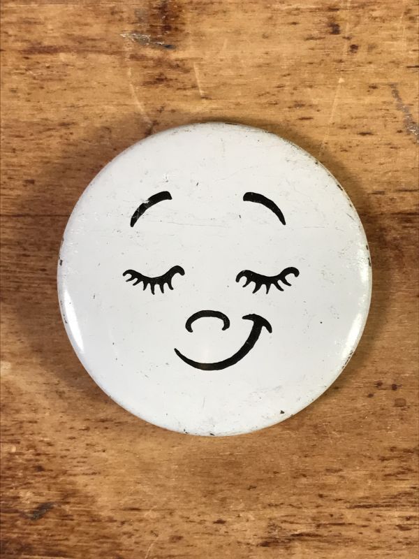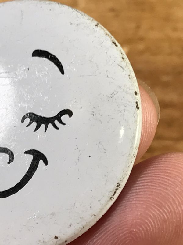70年代頃のスマイルフェイスの金属製の缶バッジになります。