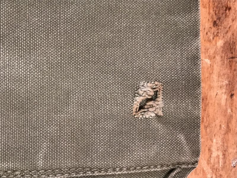 状態 経年からの汚れ、色落ち、使用感等多少ありますが破れなど大きなダメージは無く比較的良い状態です。開けた内側の左上部分にほつれ破れの穴が1か所あります。