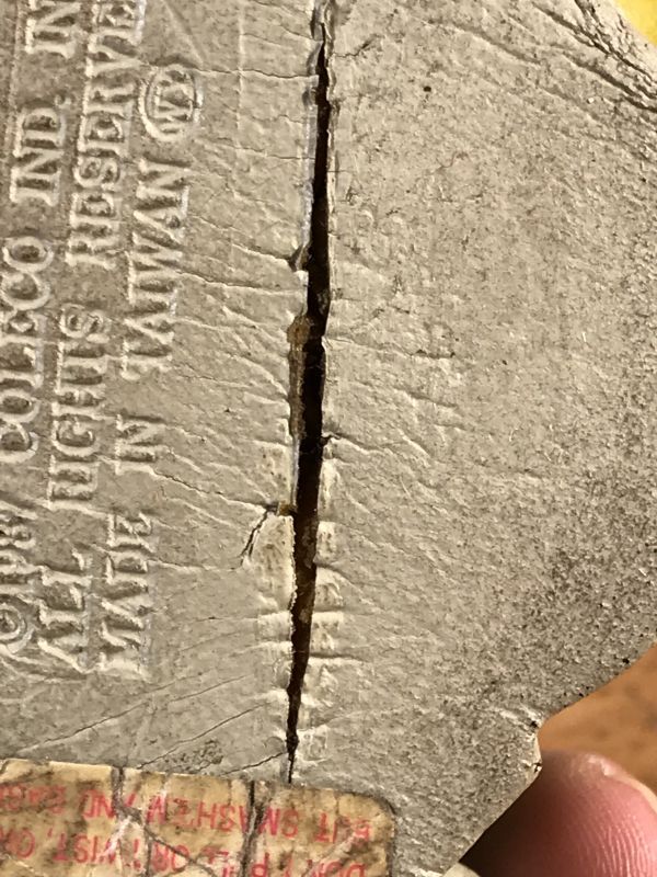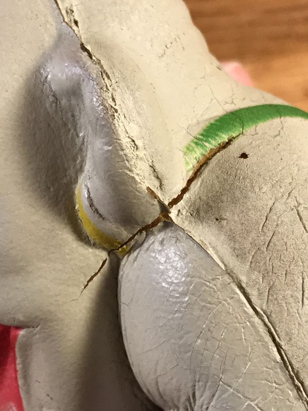 状態 経年からの汚れ、細かなキズ、ペイントロス、細かなヒビ等多少ありますが比較的綺麗な状態です。右耳の下、底面の真ん中の線の部分が割れてきています。頭の後ろ部分に細かな穴が開いています。
