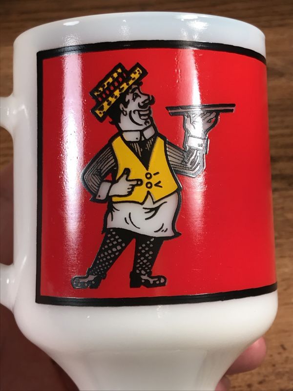 70年代頃のFederal社製の“Ken's Pizza”のミルクガラス製フッテッドマグカップになります。
