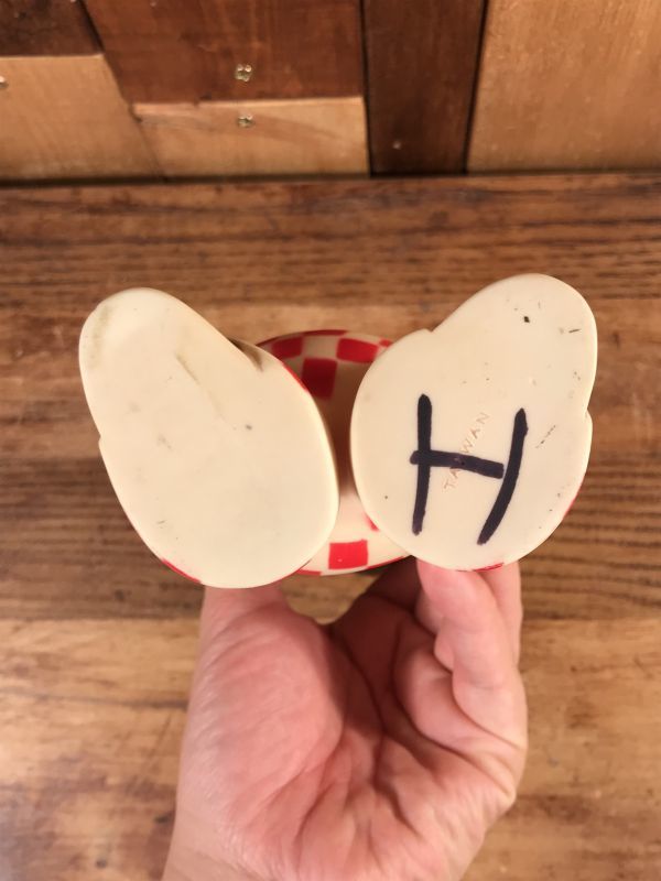 状態 経年からの汚れ、細かなキズ、ペイントロス等多少ありますが割れ、潰れ、へこみなど大きなダメージは無く比較的綺麗な状態です。右足の裏にHのペンの落書きがあります。