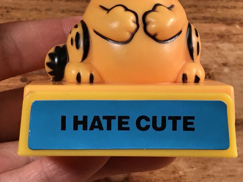 Garfield “I Hate Cute” Plastic Push Gimmick Toy ガーフィールド ビンテージ ギミックトイ 80年代