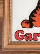 アメリカの新聞のコミックキャラクター“ガーフィールド”のアートが描かれたガラスプレートが木枠の額縁にはめ込まれた壁掛けです。