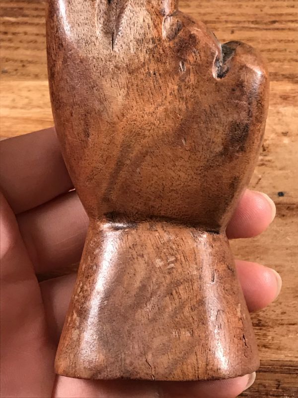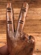 70年代にアメリカで流行したピースの木彫りのハンドサインの置物です。