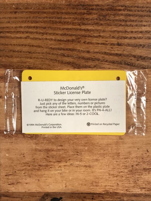 McDonald's Sticker License Plate マクドナルド ビンテージ ライセンスプレート 90年代