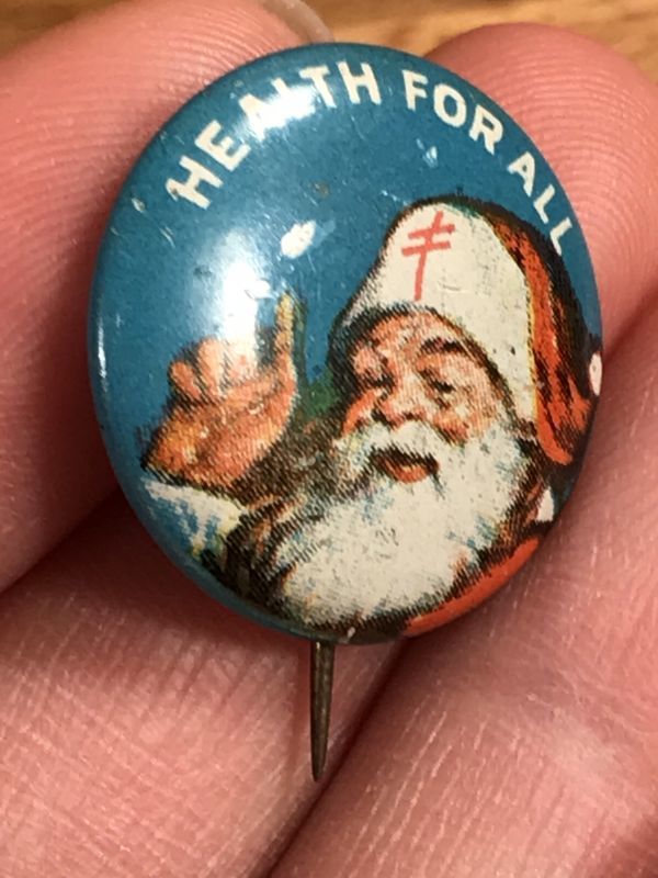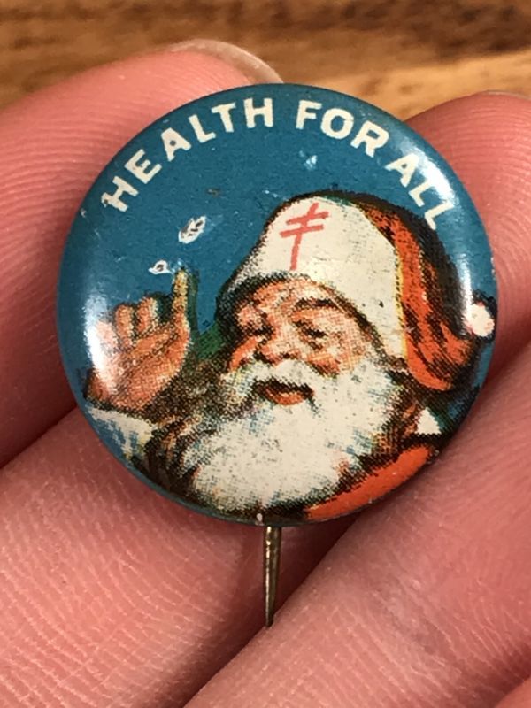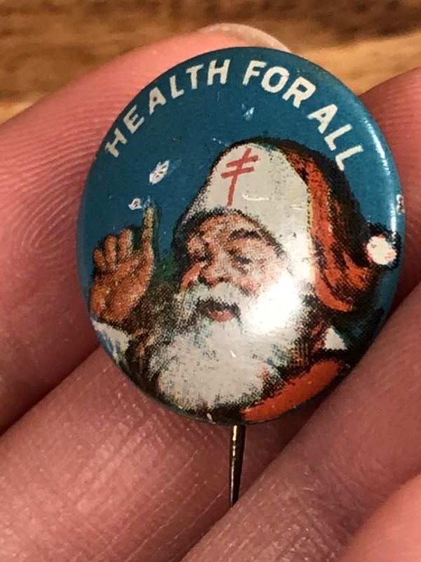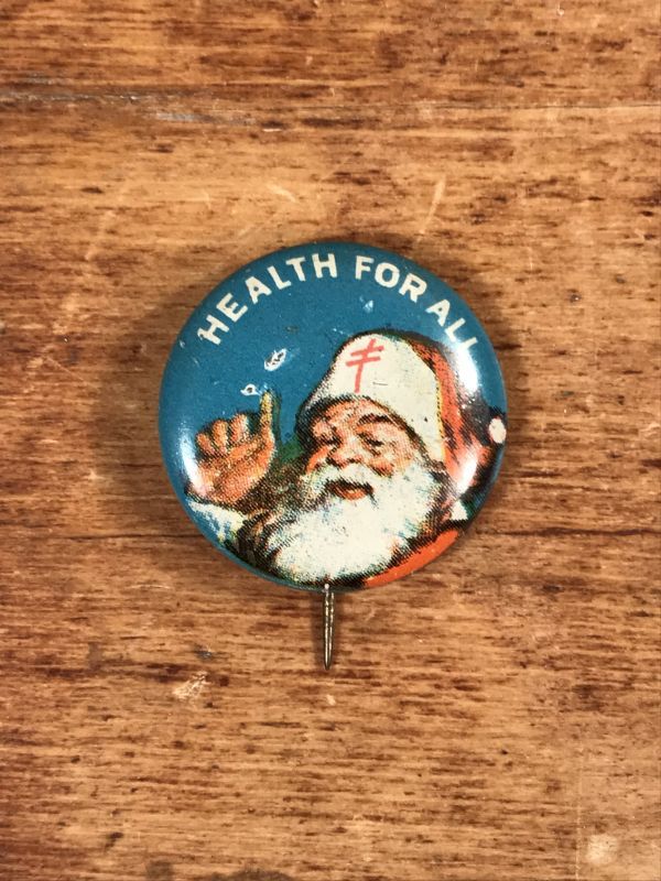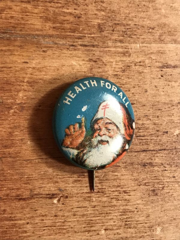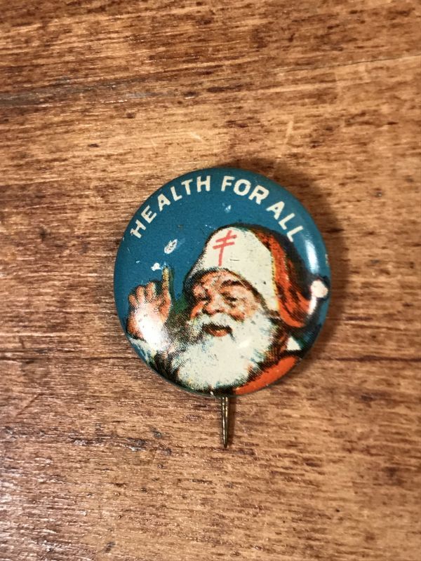 Double Barred Cross Santa Claus “Health For All” Pinback サンタクロース ビンテージ 缶バッジ 缶バッチ 30〜40年代