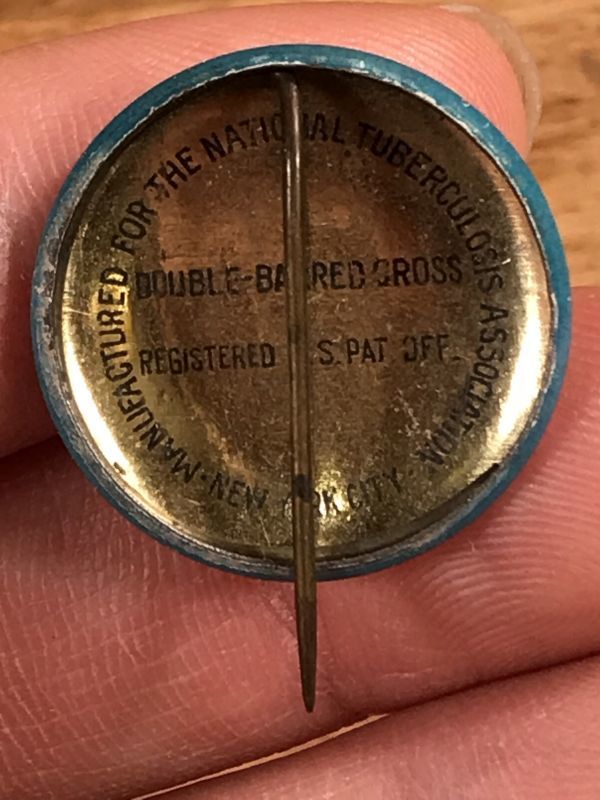 30〜40年代頃のDouble Barred Cross Santa Claus “Health For All”の金属製の缶バッジになります。