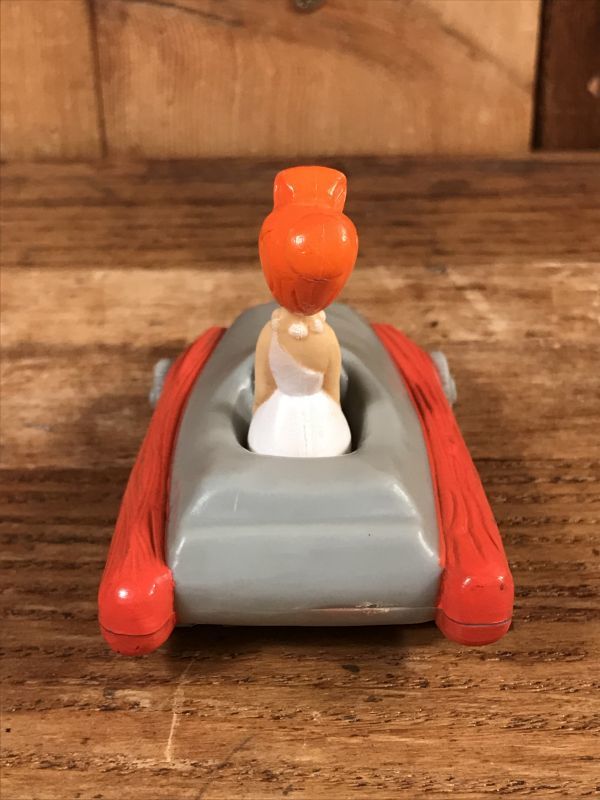 アメリカのデニーズで配布されたフリントストーンのウィルマの車に乗ったおもちゃです。