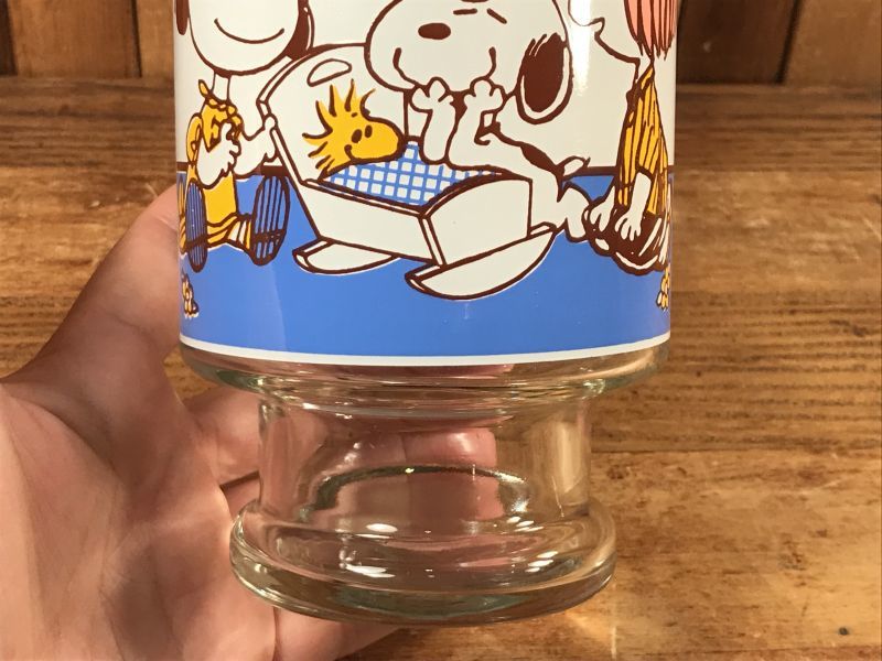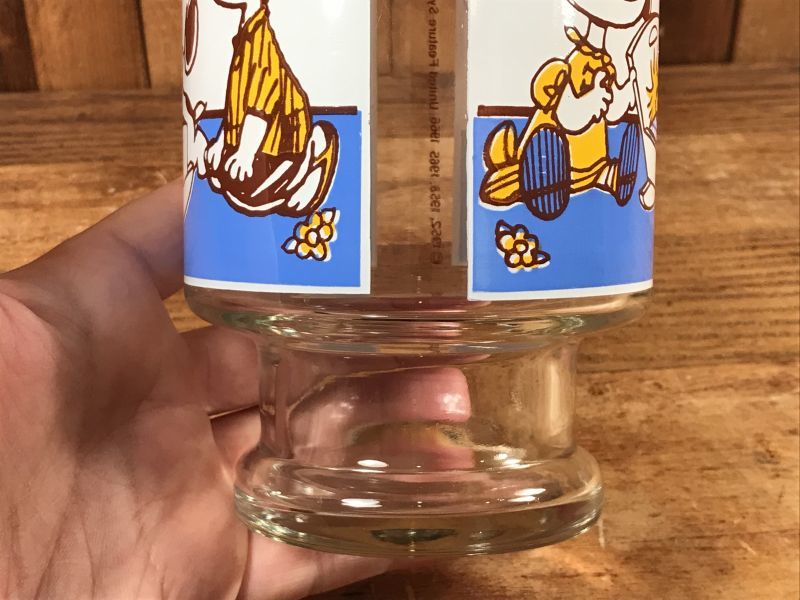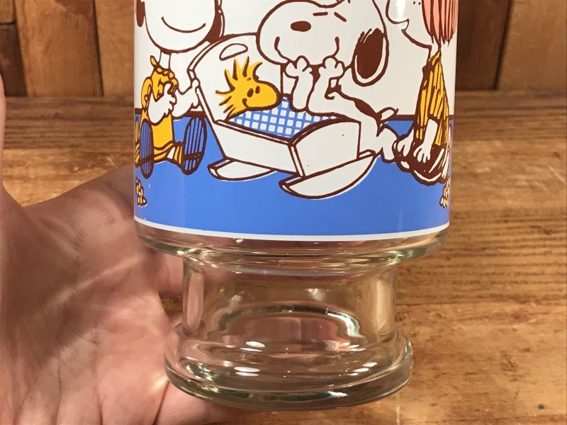 ファイヤーキングなどで有名なアンカーホッキング社製のスヌーピーとピーナッツギャングたちが描かれたビッググラスです。