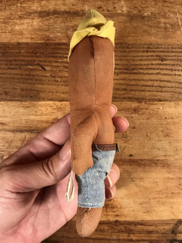 状態 経年からの汚れ、細かな傷等多少ありますが破れ、ほつれなど大きなダメージは無く比較的綺麗な状態です。頭の帽子の真ん中部分に若干キズがありますが気にならない程度です。
