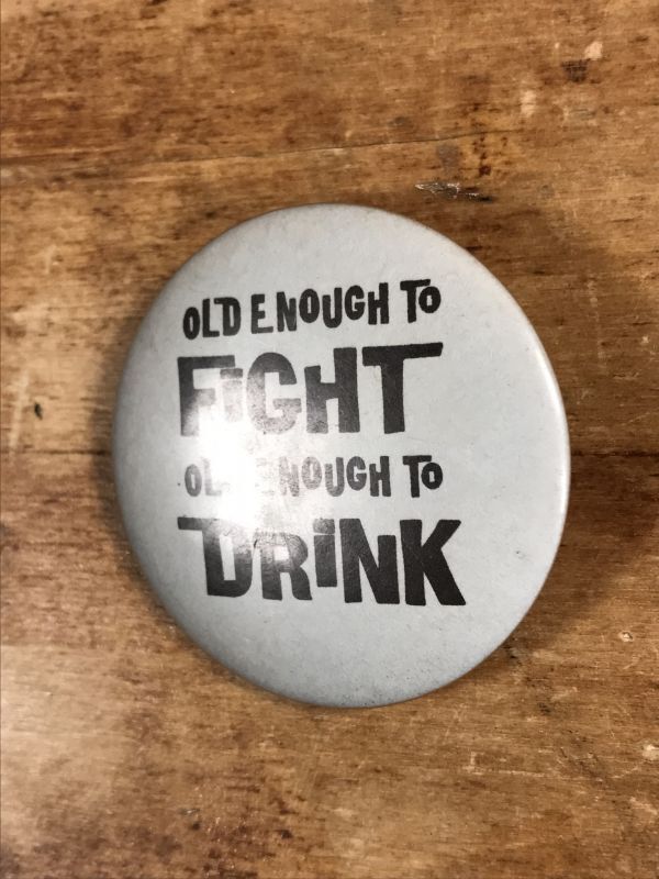 Old Enough To Fight Old Enough To Drink Pinback メッセージ ビンテージ 缶バッジ 缶バッチ 80年代