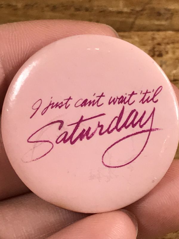 I Just Can't Wait 'Til Saturday Pinback メッセージ ビンテージ 缶バッジ 缶バッチ 80年代
