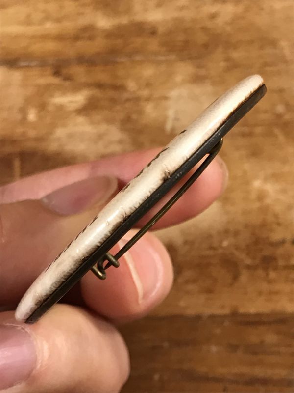 針が真鍮製の少し古いタイプの缶バッジです。