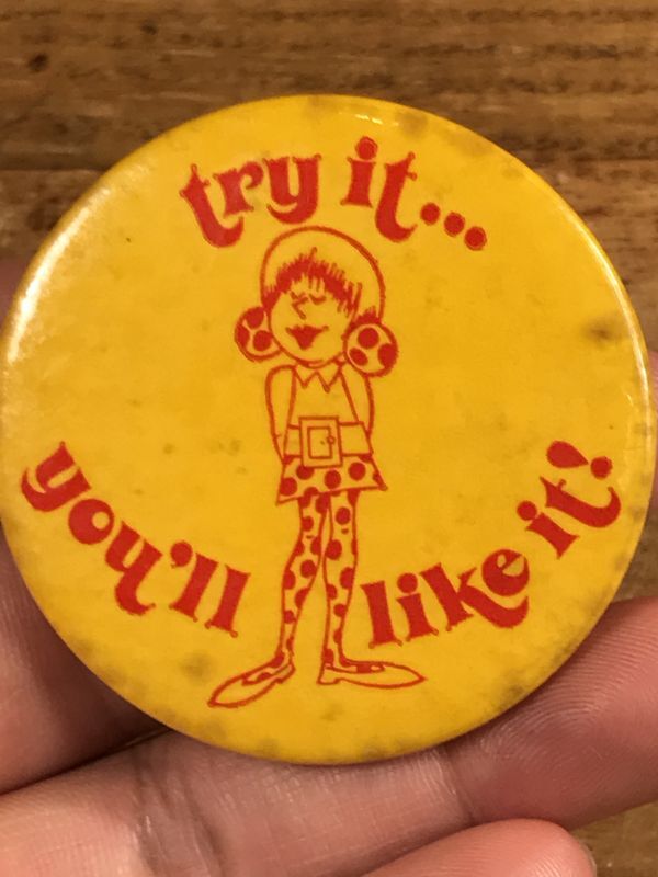 Try It... You'll Like It! Pinback メッセージ ビンテージ 缶バッジ 缶バッチ 70年代