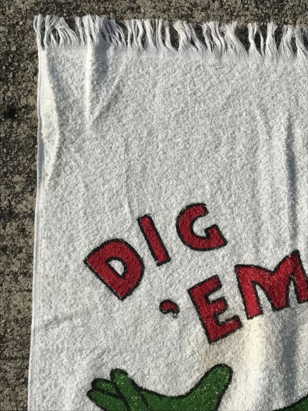 ケロッグのシリアル「ハニースマックス」のキャラクター「Dig 'Em(ディグエム)」の70年代頃の布製バスタオルになります。