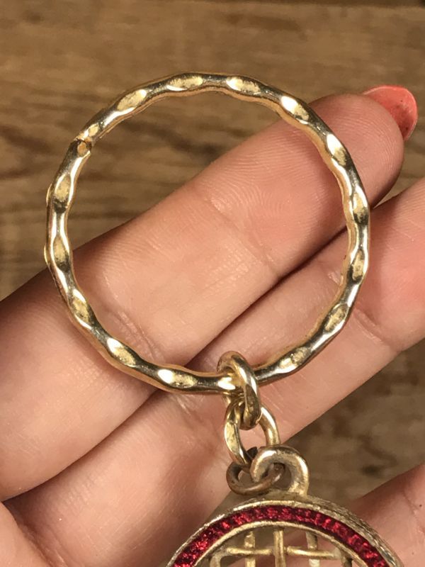 70年代頃〜のパールの玉が付いたテニスラケットのエナメル加工の金属製キーホルダーになります。