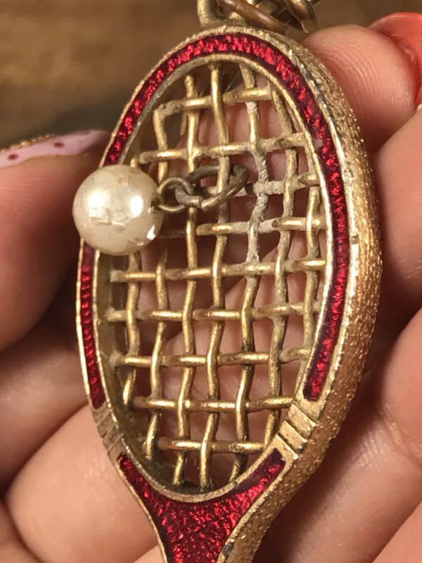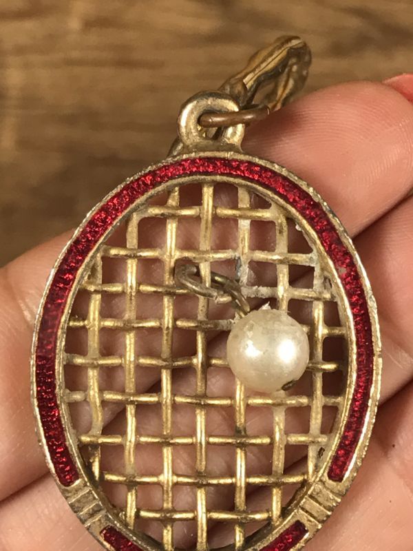 Tennis Racket Pearl Enamel Keychain テニスラケット ビンテージ キーホルダー エナメル 70年代
