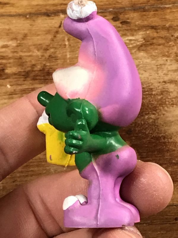 70年代後半にアメリカでスマーフが流行した際に便乗して造られたであろうスマーフによく似たキャラクター“グノームファミリー”のビールを持ったPVCフィギュアです。