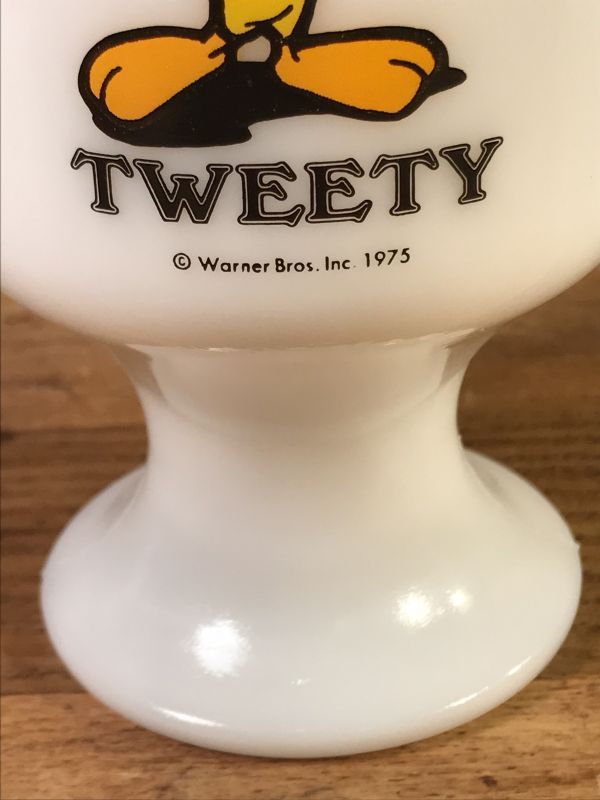 トゥイーティーがプリントされたファイヤーキングで有名なミルクガラス製のずっしりとしたマグカップです。
