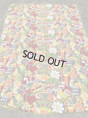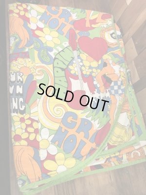 70年代頃のフラワーやラブなどのポップアートが描かれたコットンポリ製フラットシーツになります。