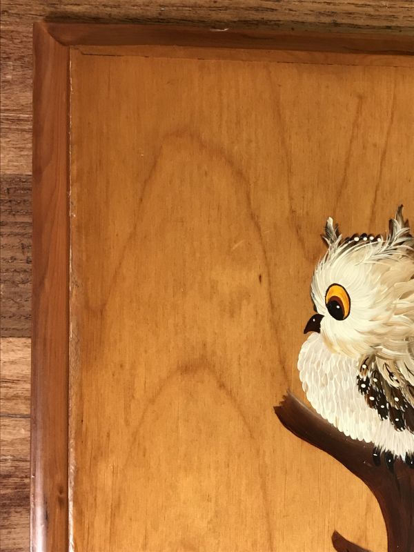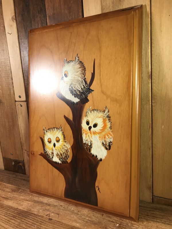 Three Owl Hand Paint Wooden Wall Hanging フクロウ ビンテージ 壁掛け ハンドペイント 70年代