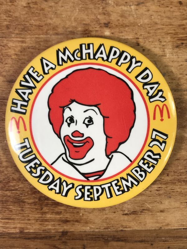 McDonald's Canada “Have A McHappy Day” Ronald Pin Back マクドナルド ビンテージ 缶バッジ ロナルド 80年代~