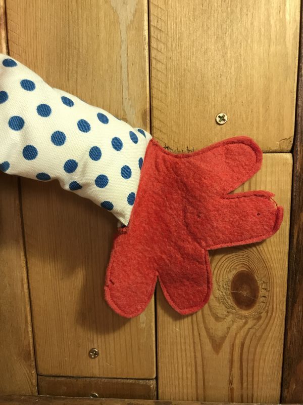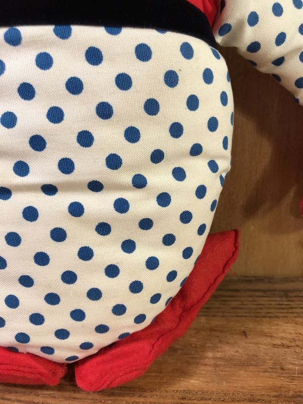 状態 経年からの汚れ、虫食い等多少ありますが破れなど大きなダメージは無く比較的綺麗な状態です。左目、両手のフェルト部分、右ほっぺた部分に若干虫食いの穴があります。左手の付け根に若干ほつれがあります。