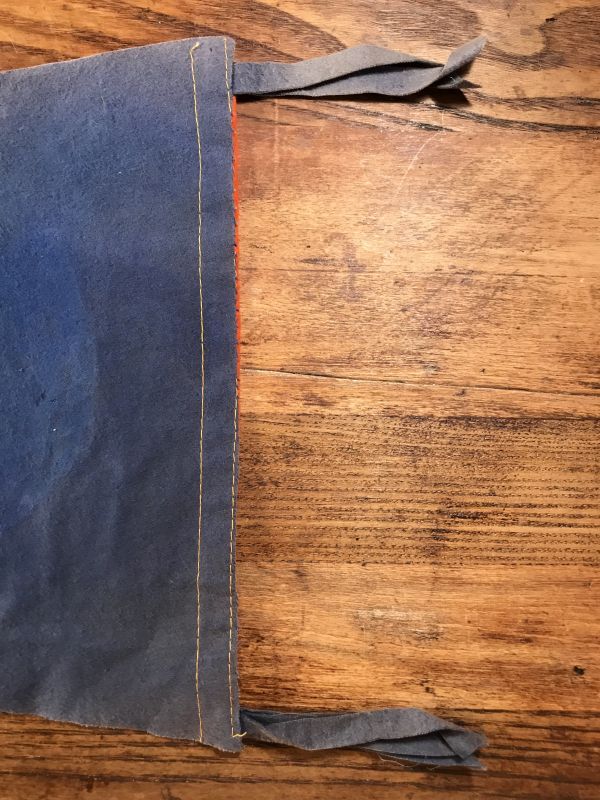 状態 経年からの汚れ、色落ち等多少ありますが破れなど大きなダメージは無く比較的綺麗な状態です。先端の部分に若干ほつれがあります。フェアーの文字のFの下にほんの小さな穴がありますが気にならない程度です。