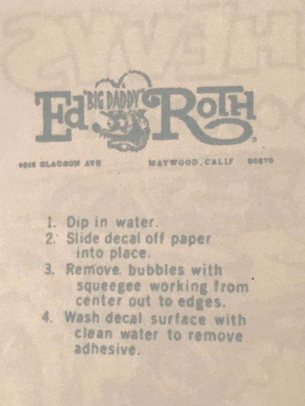Ed “Big Daddy” Roth “Chevys Dominate” Water Slide Decal エドロス ビンテージ 水張りステッカー ウォータースライドデカール 60年代