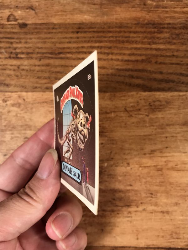 80年代頃のTopps社製ガーベッジペイルキッズ「Dinah Saur」の紙製ステッカーカードになります。