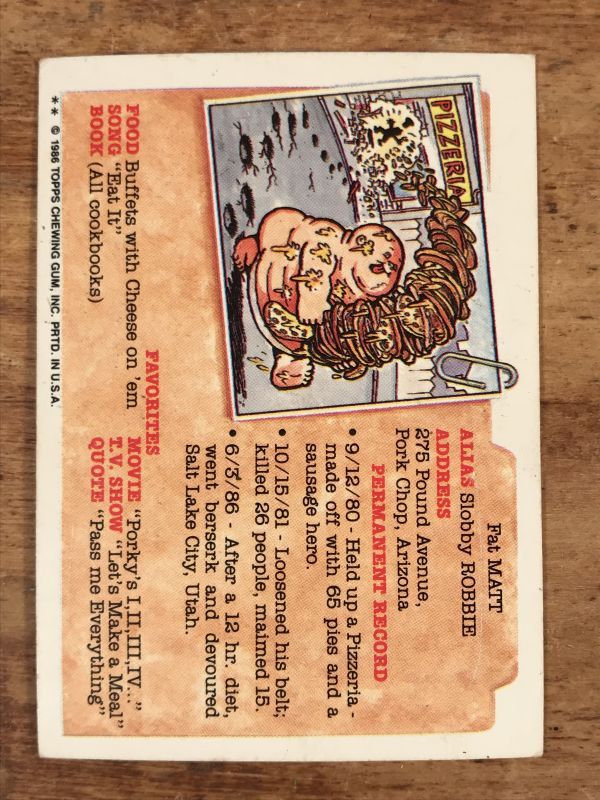 80年代頃のTopps社製ガーベッジペイルキッズ「Wormy Shermy」の紙製ステッカーカードになります。