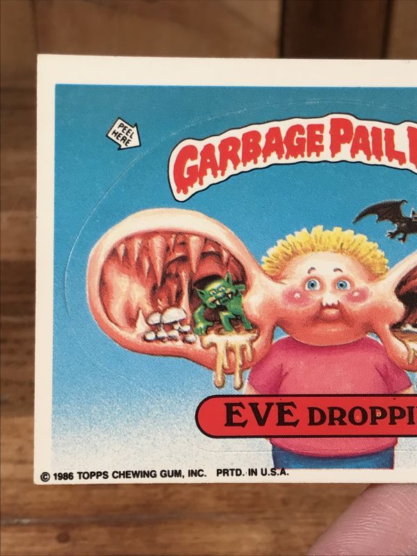80年代頃のTopps社製ガーベッジペイルキッズ「Eve Droppin'」の紙製ステッカーカードになります。