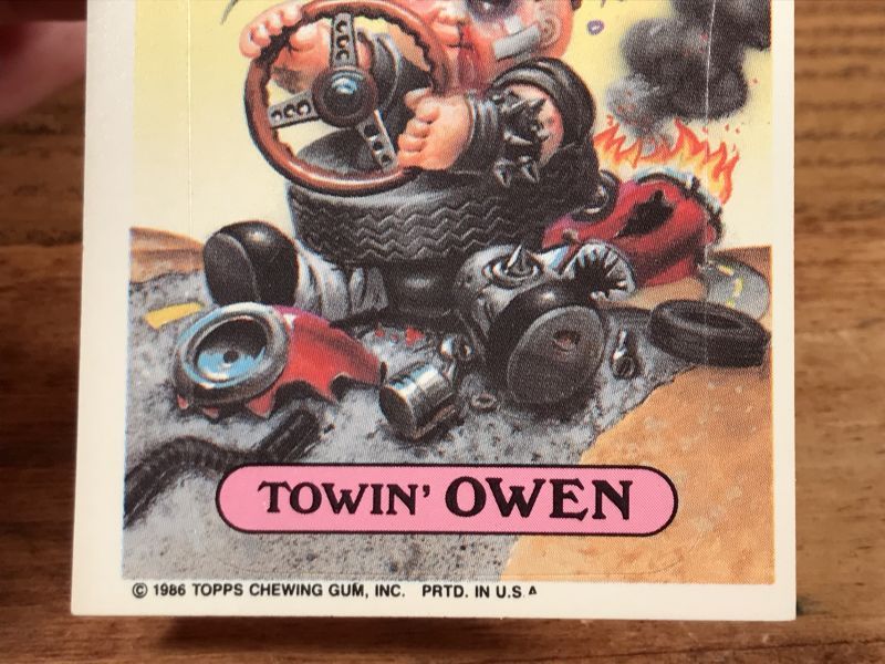 80年代頃のTopps社製ガーベッジペイルキッズ「Towin' Owen」の紙製ステッカーカードになります。