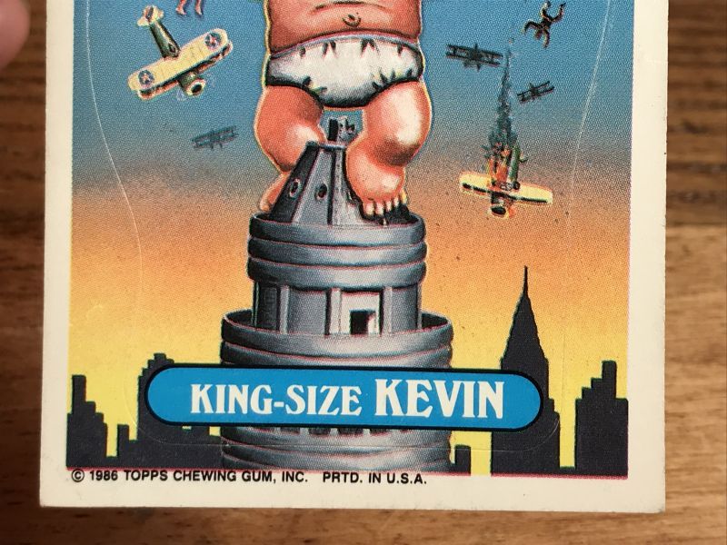 80年代頃のTopps社製ガーベッジペイルキッズ「King-Size Kevin」の紙製ステッカーカードになります。