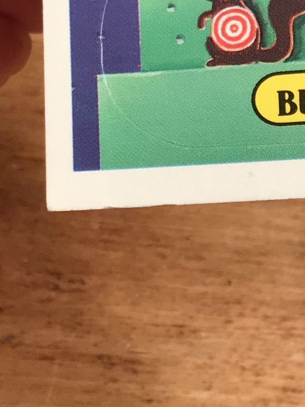 80年代頃のTopps社製ガーベッジペイルキッズ「Bullseye Barry」の紙製ステッカーカードになります。