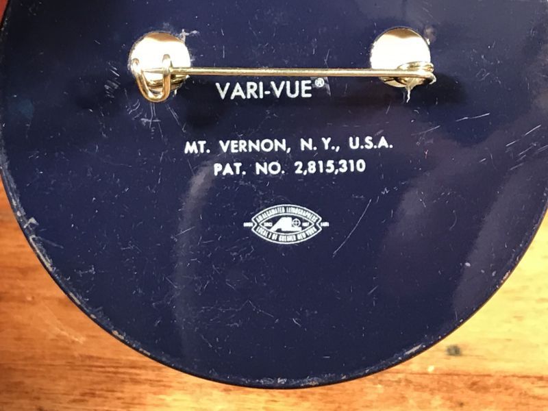 60〜70年代頃のWoodsy Owlの金属製のレンチキュラーバッジになります。