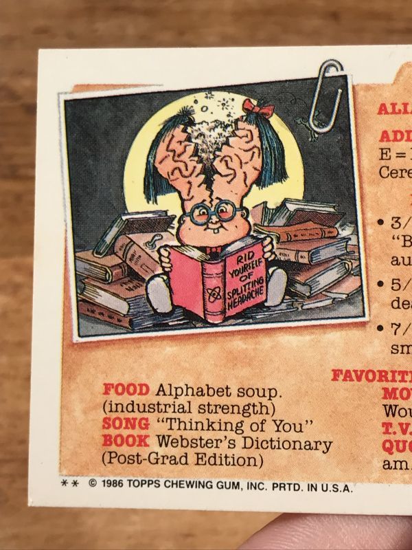 ガーベッジペイルキッズはCabbage Patch Kids dolls(キャベツ畑人形)をパロディー化したコミカルでおかしなグロいキャラクターです。