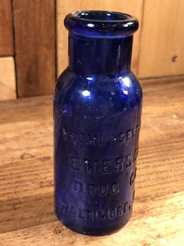 Bromo-Seltzer Emerson Drug Co. Bluw Glass Bottle ブロモセルツァー ビンテージ ブルーボトル 薬瓶 アンティーク