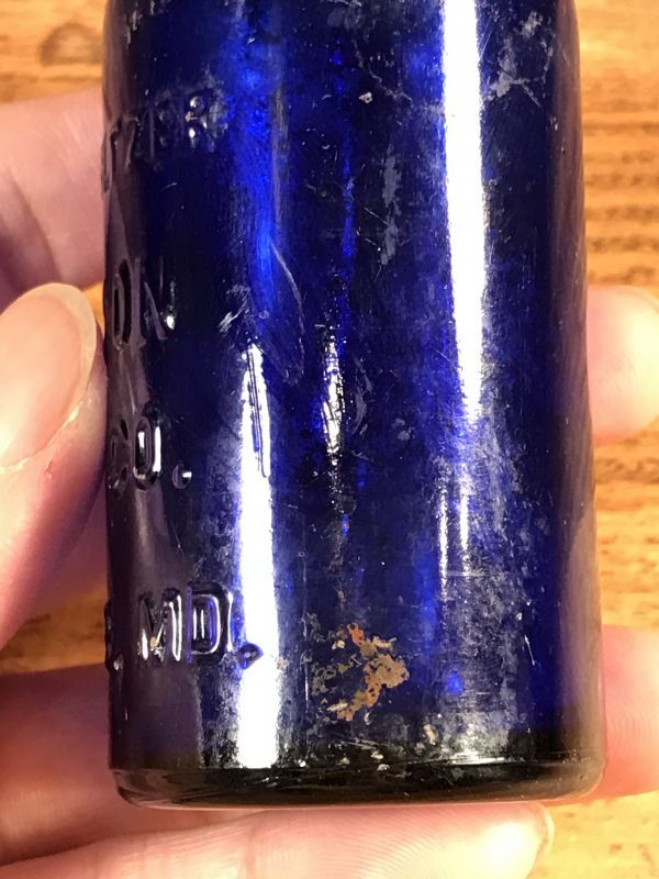 1900〜40年代頃のEmerson Drug社製のBromo-Seltzerのガラス製のブルーボトルになります。