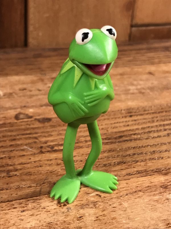 セサミストリートの制作者ジムヘンソンのバラエティ人形劇コメディ番組“マペットショウ”のカーミットの胴体がお辞儀をするように稼働するフィギュアです。
