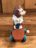 アメリカングリーティングズ社のおもちゃのデザインとライセンス部門である「クリーブランドキャラクターズ」の1983年に作成された擬人化された動物のキャラクター“ゲットアロングギャング”のヤマアラシの女の子“ポーシャポーキュパイン”のゼンマイ式の乗り物付きのPVCフィギュアです。