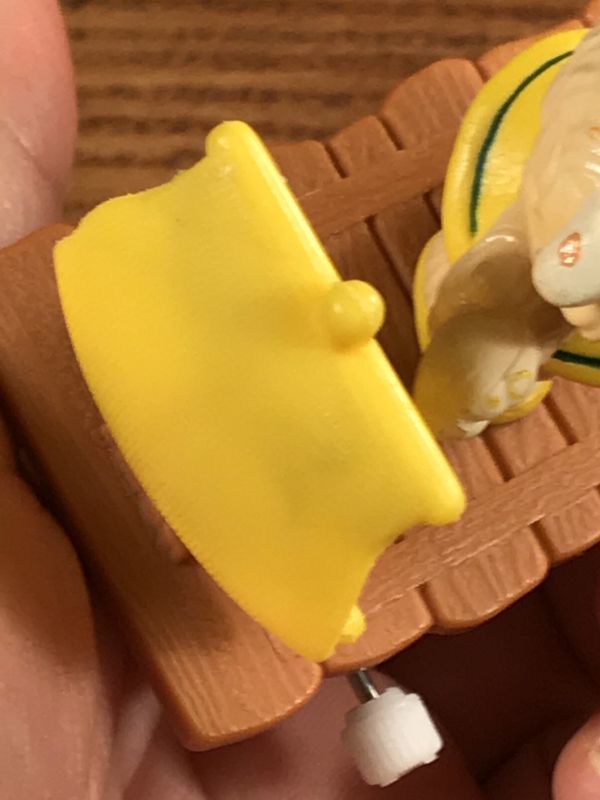 アメリカングリーティングズ社のおもちゃのデザインとライセンス部門である「クリーブランドキャラクターズ」の1983年に作成された擬人化された動物のキャラクター“ゲットアロングギャング”のバレリーナのヒツジの女の子“ウルマラム”のゼンマイ式の乗り物付きのPVCフィギュアです。