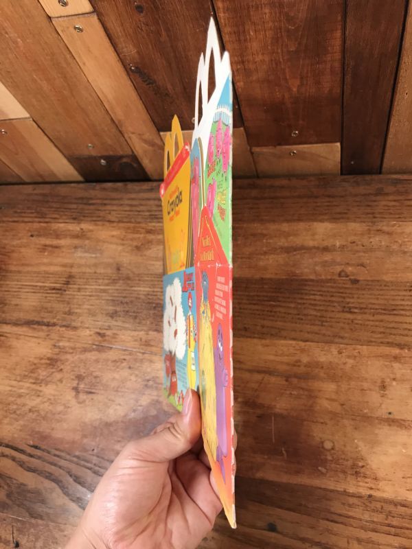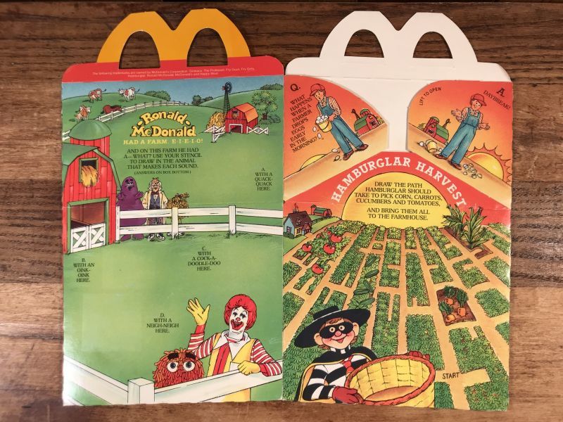 アメリカのマクドナルドで80年代頃配布されたマクドナルドのキャラクターたちの子供が遊べるゲームなどが描かれているハッピーミールトイが入っていた箱です。