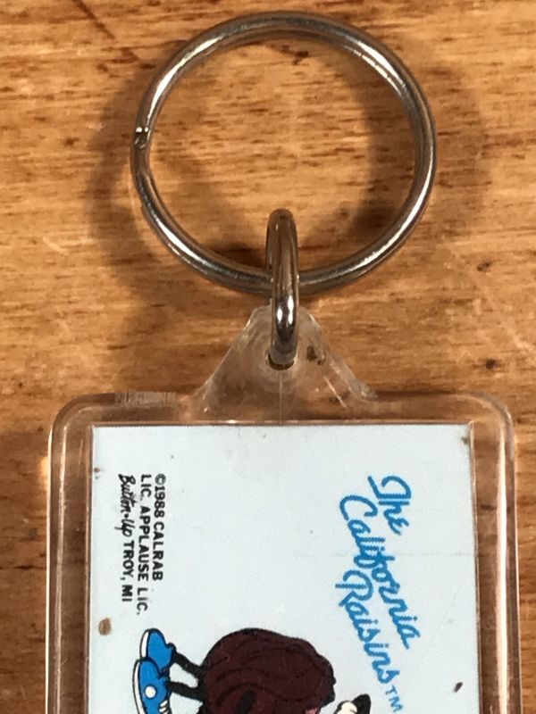 1980年代にアメリカカリフォルニア州のレーズン食品PRのために誕生した企業キャラクター“カリフォルニアレーズンズ”のウォッシングをしている絵柄のキーホルダーです。