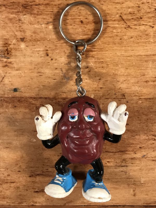 1980年代にアメリカカリフォルニア州のレーズン食品PRのために誕生した企業キャラクター“カリフォルニアレーズンズ”の“Justin X. Grape”のPVCフィギュアのキーホルダーです。